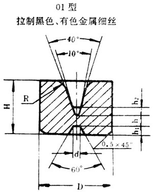 (3)在同一型號(hào)中,所表示的參數(shù)(如內(nèi)徑)有重現(xiàn)時(shí),則在重現(xiàn)規(guī)格的參數(shù)后加“-”,再寫上其外徑值,以示區(qū)別。如11-0.4和11-0.4-13,兩者均為內(nèi)徑0.4毫米的11型圓孔模,但外徑不同。前者外徑為8毫米,后者外徑為13毫米。